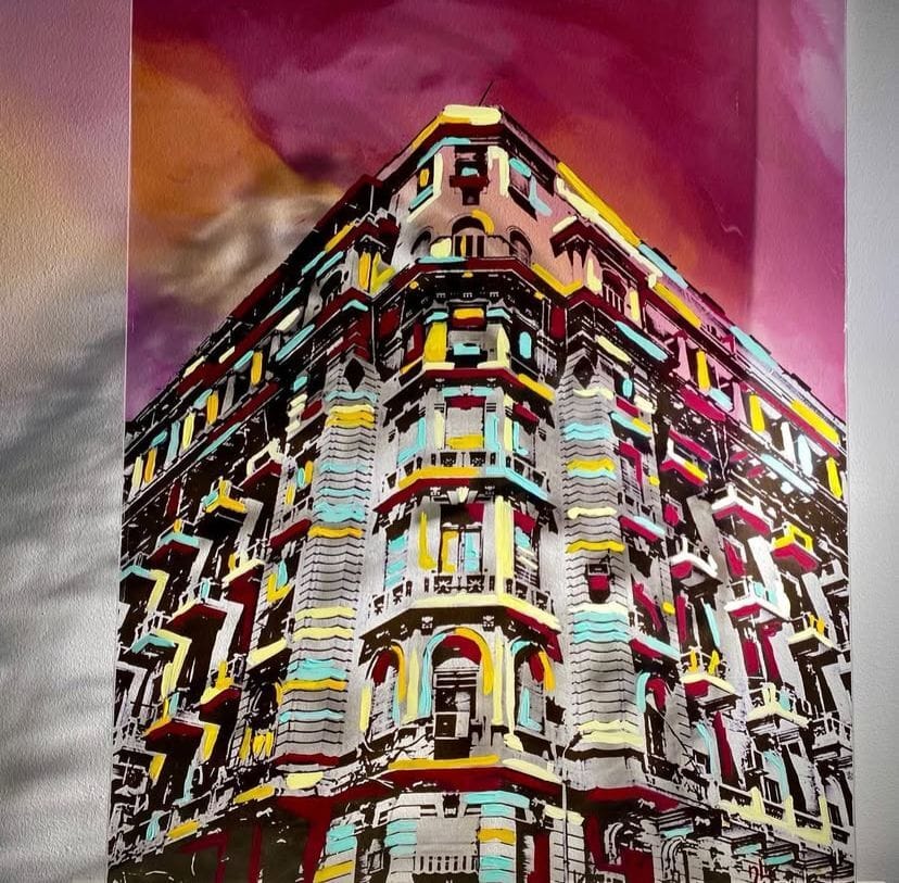 Cairo in Flames holds a special place for us. It was one of our earliest works where our signature brushstrokes truly came to life. The piece highlights an iconic building in the heart of Downtown Cairo and captures the essence of the city: its chaos, energy, and history all intertwined.